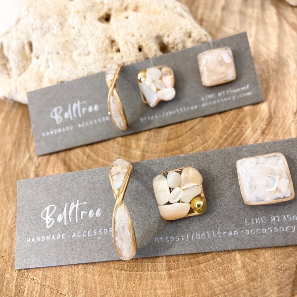 左右ピアスにプラスしてイヤーカフを付けたり、イヤーカフだけだったり、お手持ちアクセサリーと合わせてみたり